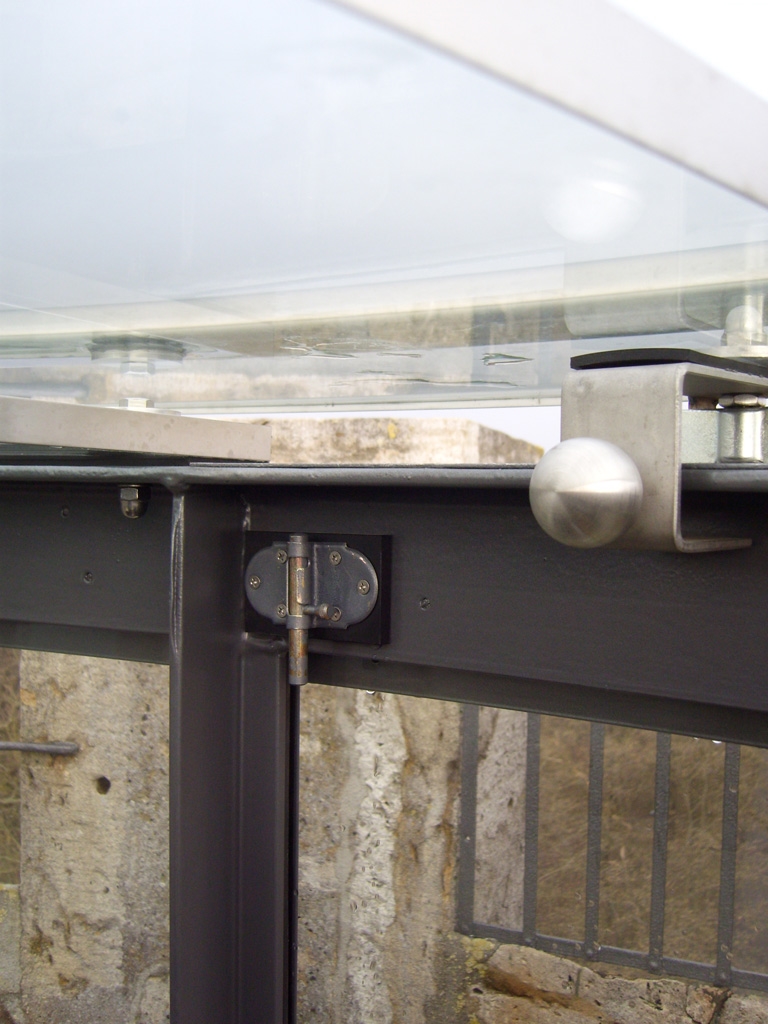 Hauptleistungen: Stahlgeländer, Bewegliche Dachverglasung zum Aufschieben für Treppenausstieg